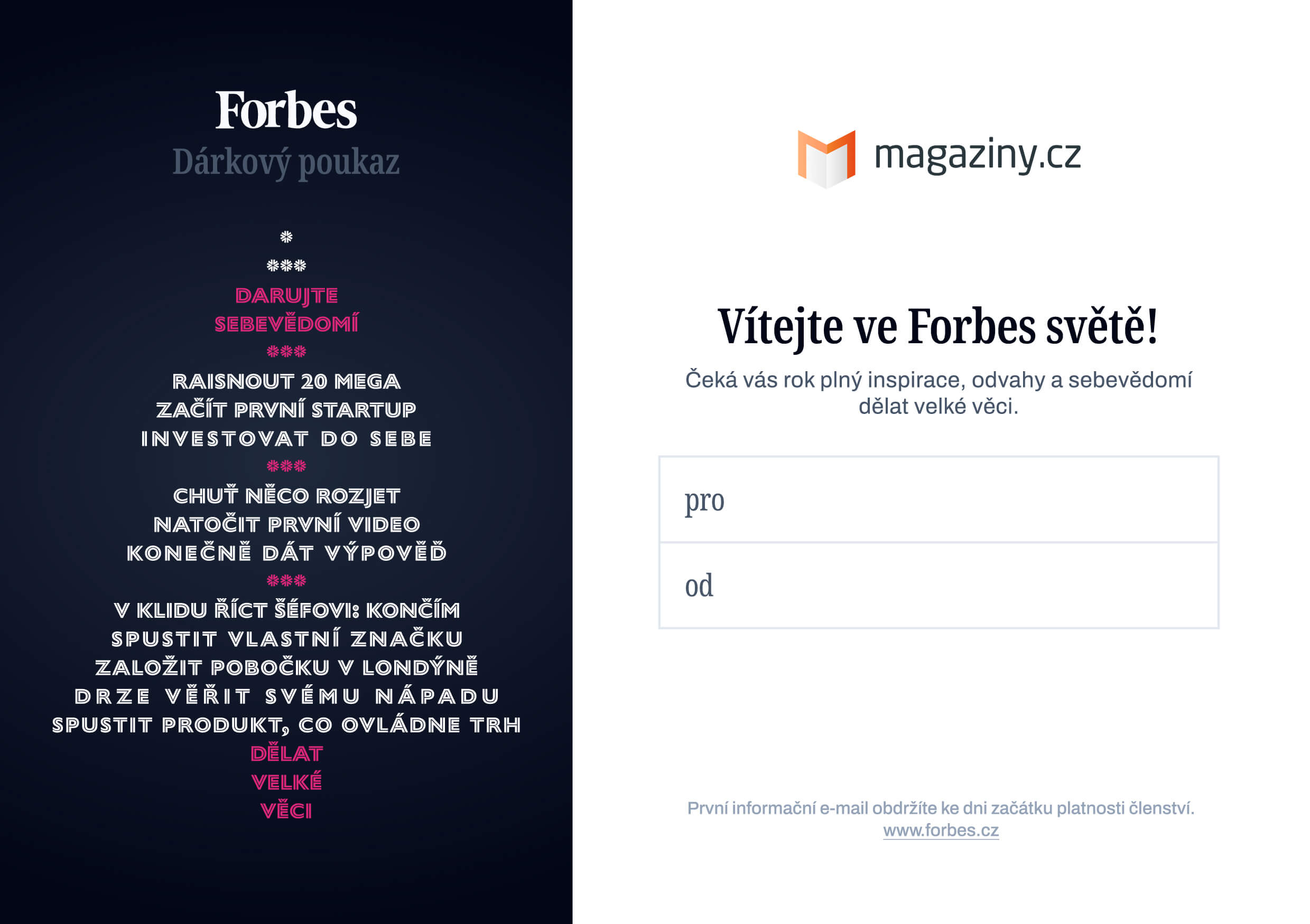 * Digitální vydání magazínu FORBES budete mít k dispozici ke čtení na Forbes.cz ve formátu PDF.